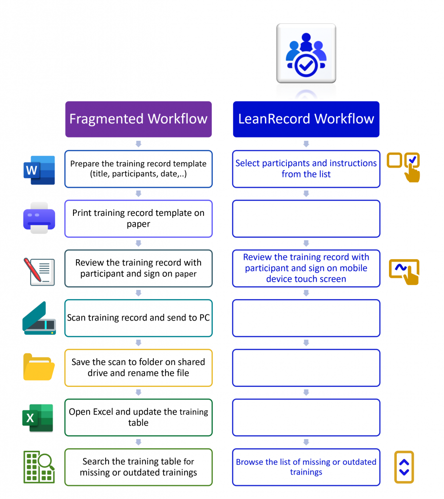 LeanRecod is designed to simplify the training record workflow. Say goodbye to the fragmented workflow and just generate and manage all records in a single app.